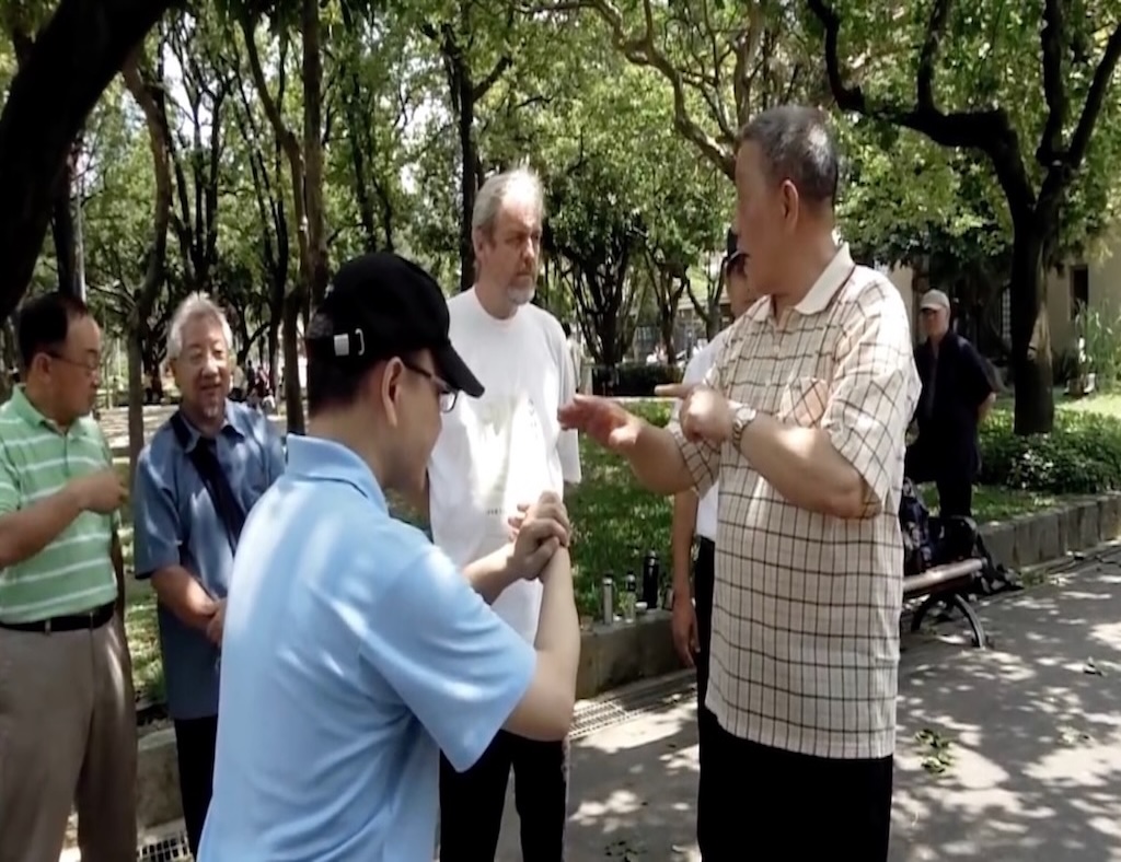 He took a horse stance, placed his palm just above the Baihui point on the top of my head and prepared to demonstrate. I thought to myself, “I weigh around 60 kg. What could he possibly do to me?”